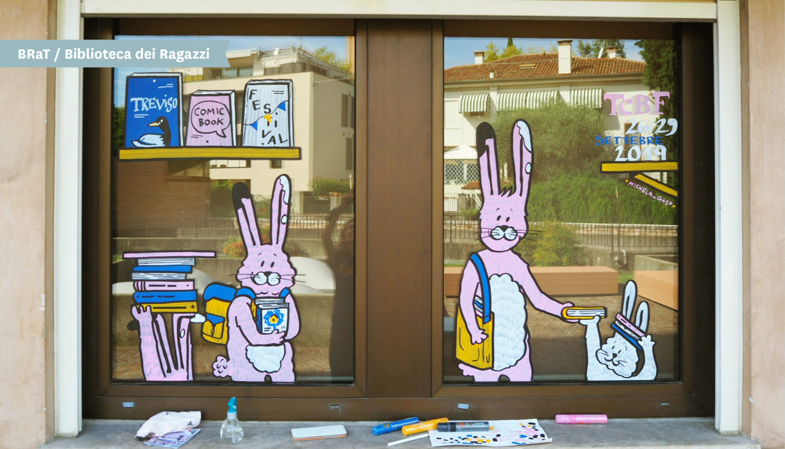 Durante il Treviso Comic Book Festival su molte delle vetrine della città iniziano a comparire personaggi e illustrazioni provenienti da mani diverse. Quelle mani sono dei volontari del festival, il gruppo “Illustratori”, selezionati per decorare le vetrine delle attività interessate.